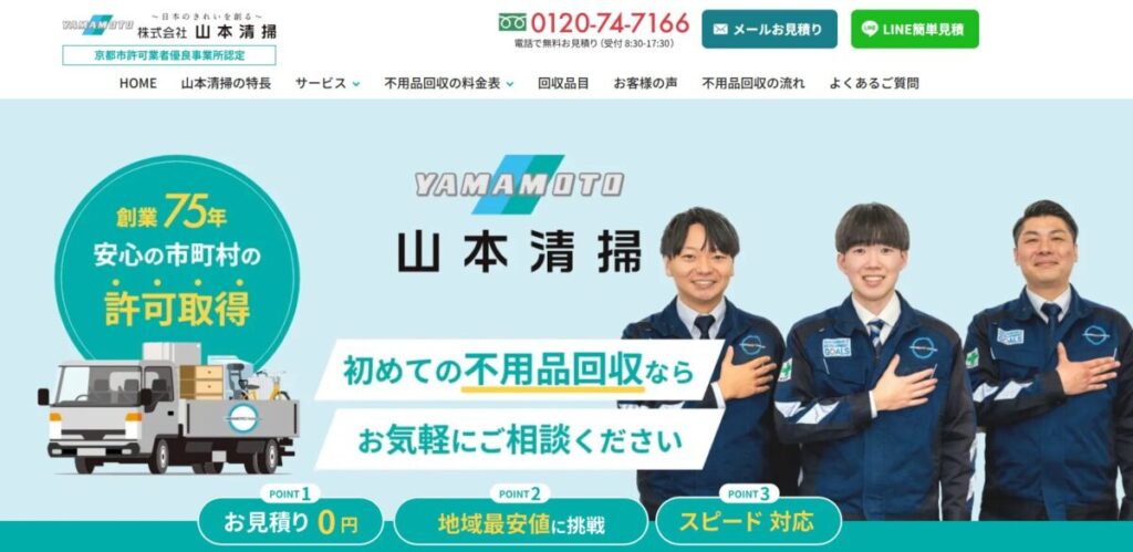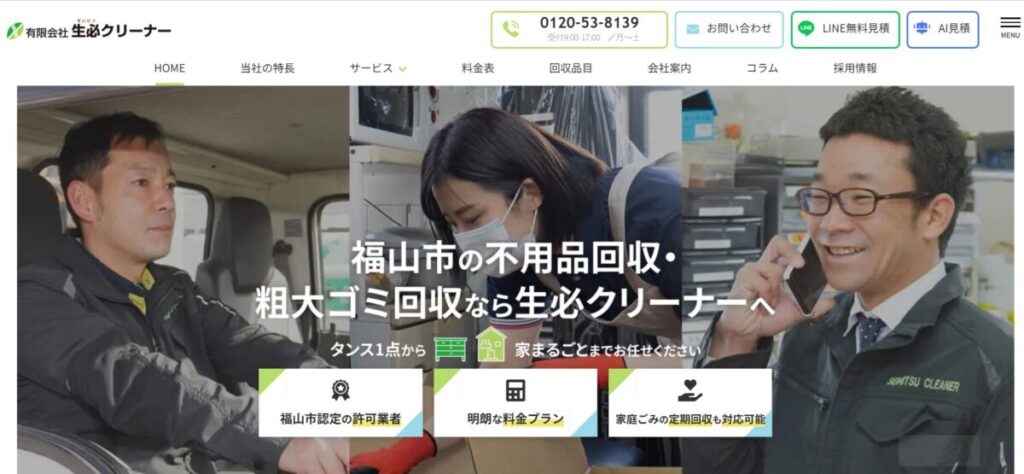 明確な料金設定と迅速な対応が強みで、LINEでの無料見積もりも可能。