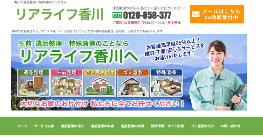 香川県全域に対応する遺品整理専門業者「リアライフ香川」の紹介サイトです。