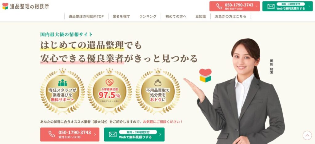 「遺品整理の相談所」は、遺品整理や生前整理を行う全国の優良業者を無料で紹介するサービスサイトです。
